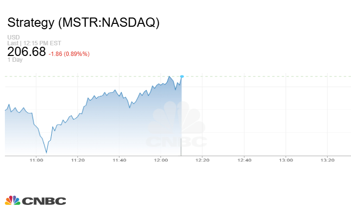 الرئيس التنفيذي للشركة، مايكل سايلور، يقول إن شركته تشتري "قدراً كبيراً" من العملة المشفرة عند المستويات الحالية، بحسب ما نقلته CNBC.
