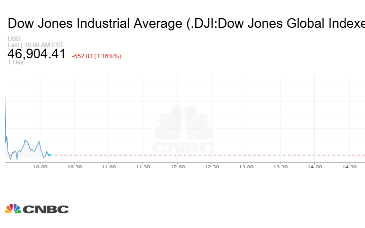 تراجع مؤشر داو جونز يتراجع بأكثر من 500 نقطة خلال تعاملات الجمعة 14 نوفمبر/ تشرين الثاني في وول ستريت مع استمرار عمليات البيع.