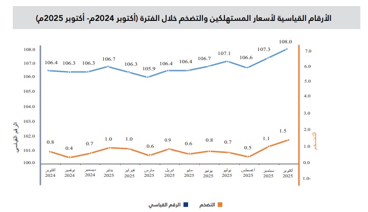 ارتفع مؤشر أسعار المستهلك في سلطنة عُمان على أساس سنوي خلال أكتوبر/تشرين الأول 2025 بنسبة 1.5% مقارنة بالشهر المماثل من العام الماضي.