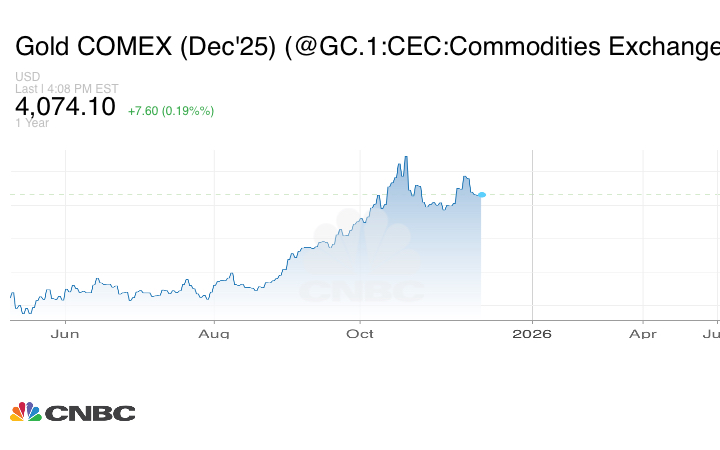 زادت العقود الآجلة للمعدن الأصفر تسليم ديسمبر بنسبة 0.40% أو ما يعادل 16.3 دولار إلى 4082.80 دولار للأونصة.