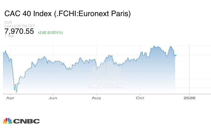 وأغلق مؤشر كاك الفرنسي بنحو 0.03% إلى 7970.55 نقطة.