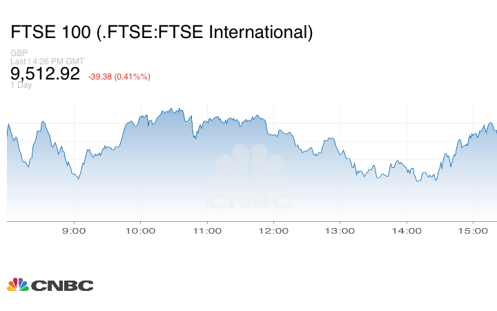 وانخفض مؤشر فوتسي البريطاني بنسبة 0.04% مختتماً الجلسة عند عند 9512.92 نقطة.