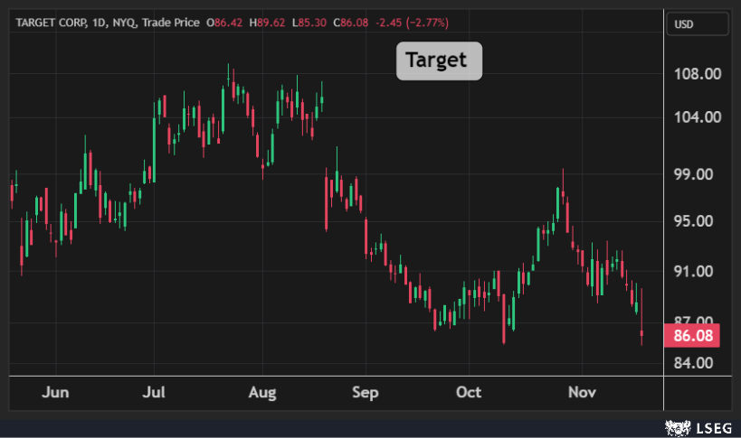 تراجع سهم Target بنسبة 3% في جلسة الأربعاء ليغلق عند أدنى مستوياته في 6 أسابيع، لتفقد الشركة 1.1 مليار دولار من قيمتها السوقية في يوم واحد.