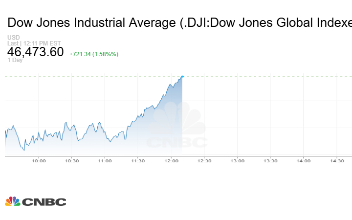 مؤشر داو جونز الصناعي يرتفع بأكثر من 700 نقطة قبيل انتصاف التعاملات .. كما يرتفع مؤشرا ستاندرد آند بورز 500 وناسداك المركب بأكثر من 1%.