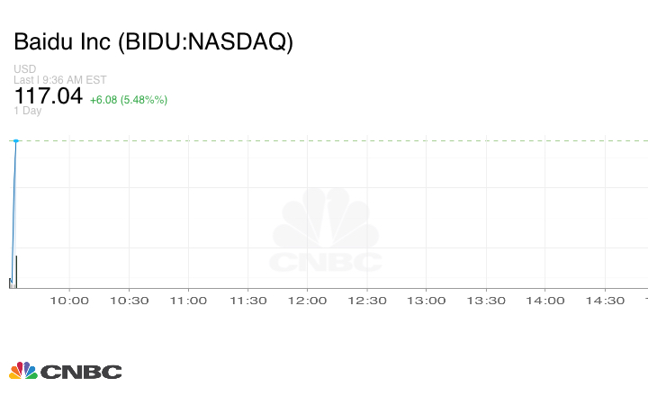 رفع البنك تصنيف سهم بايدو الصيني لخدمات الإنترنت من محايد إلى زيادة الوزن. كما رفع سعره المستهدف للأسهم الأميركية من 110 دولارات إلى 188 دولاراً، مما يشير إلى ارتفاع بنسبة 69% مستقبلًا.