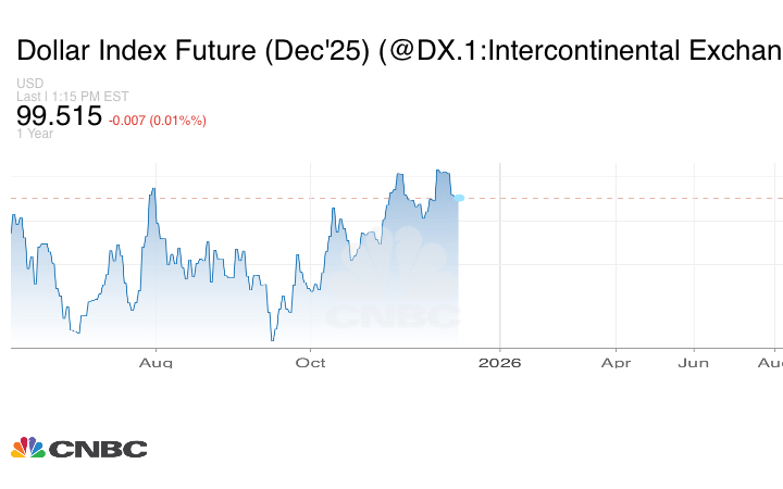 وتراجع مؤشر الدولار بنسبة 0.01% ليصل إلى 99.51، لكنه تراجع من أعلى مستوى له منذ ستة أشهر، الذي سجله قبل أسبوع، ويتجه نحو تسجيل أكبر انخفاض أسبوعي منذ شهر يوليو الماضي.