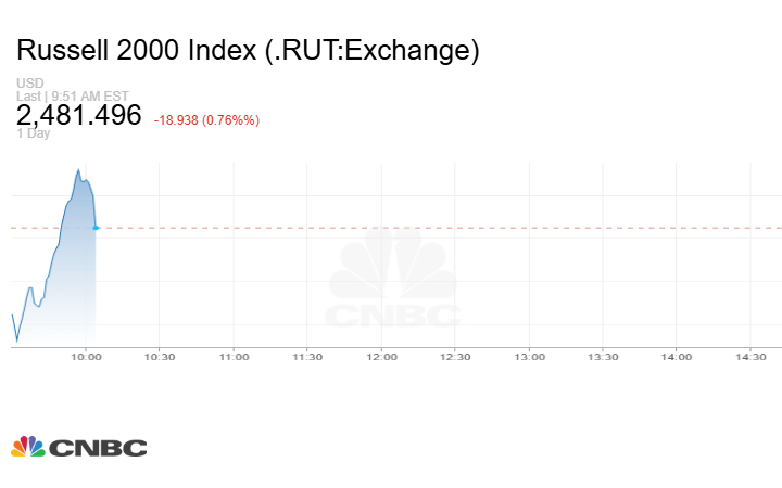 تراجعت أسهم الشركات الصغيرة خلال مستهل التداولات، لتنضم إلى أسهم قطاع التكنولوجيا في الأداء الضعيف.