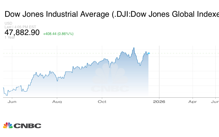 وزاد المؤشر، الذي يضم 30 سهماً، بمقدار 408 نقاط، أي بنسبة 0.9% مغلقاً عند 47.882.90 نقطة.
