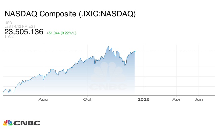 ولليوم الثالث على التوالي، حافظ مؤشر ناسداك المركب على مكاسبه، حيث ارتفع بنسبة 0.22% فقط ليغلق عند 23,505.14 نقطة.