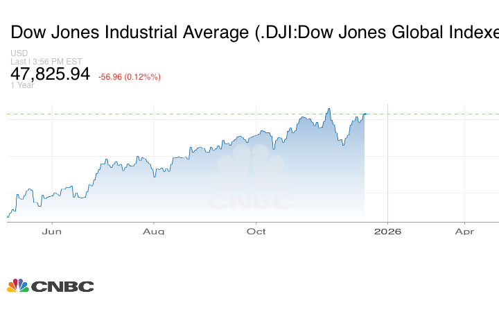 وانخفض مؤشر داو جونز الصناعي 31.96 نقطة فقط، بنسبة 0.07%، ليغلق عند 47,850.94 نقطة.