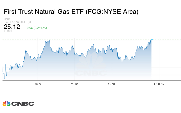 استفادت أسهم شركات إنتاج الغاز الطبيعي، حيث ارتفع صندوق فيرست تراست First Trust Natural Gas ETF للغاز الطبيعي المتداول في البورصة بنسبة تقارب 7% هذا الربع، في طريقه لتحقيق أفضل أداء ربع سنوي منذ أوائل عام 2024، مدفوعةً بمكاسب قوية في أسهم شركات بايتكس إنرجي Baytex Energy، وكومستوك ريسورسز Comstock Resources، وسي إن إكس ريسورسز CNX Resources، وبي كيه في، وغلفبورت إنرجي، وجميعها ارتفعت بنسبة 20% أو أكثر.