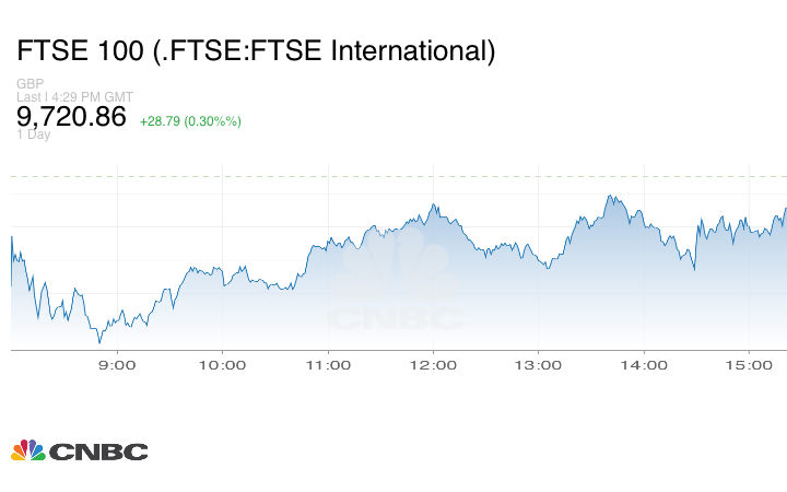 وصعد مؤشر فوتسي 100 البريطاني بنسبة 0.3% إلى 9.723.08 نقطة.