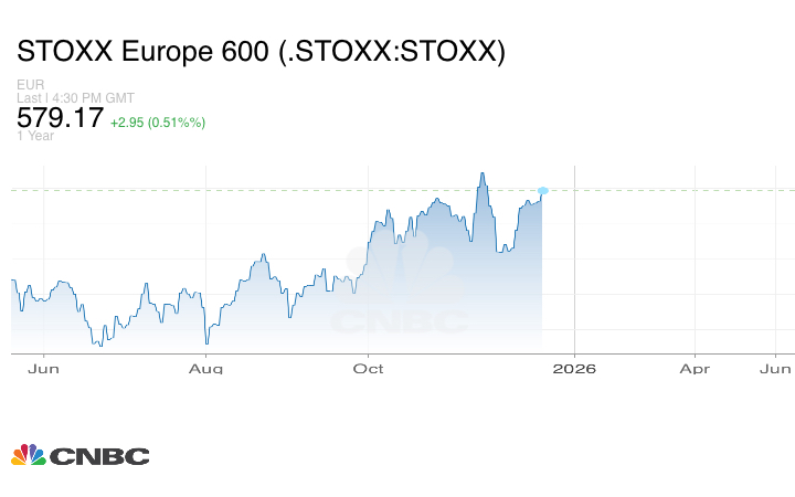 ارتفع مؤشر ستوكس 600 الأوروبي بنسبة 0.5%، مع تحقيق معظم البورصات والقطاعات الرئيسية مكاسب.