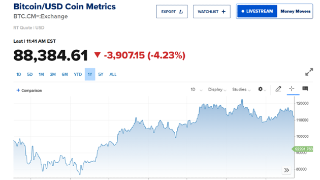 دفع استئناف عمليات تصفية العملات المشفرة سعر البيتكوين للهبوط دون مستوى 90 ألف دولار خلال تعاملات الجمعة 5 ديسمبر/ كانون الأول، وتراجعت العملة المشفرة الأكبر Bitcoin بأكثر من 3%، لتسجل 88.9 ألف دولار.