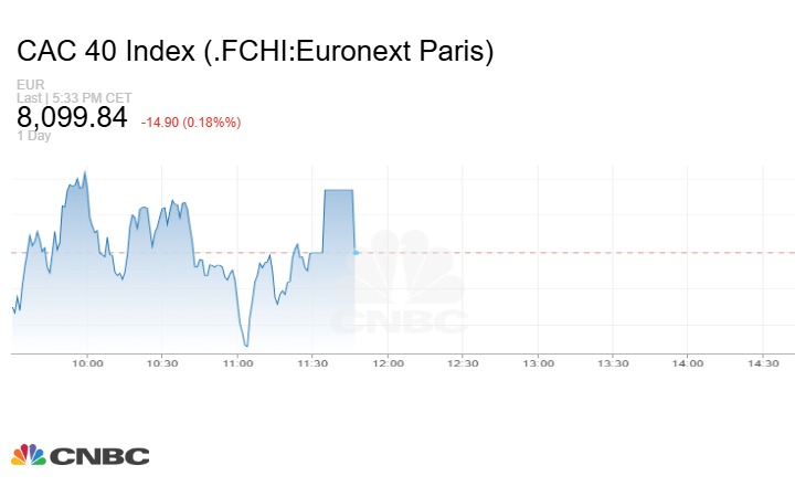 أما مؤشر كاك CAC 40 الفرنسي فسجل انخفاضا بنسبة 0.18%
