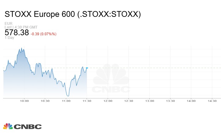 انخفض المؤشر ستوكس 600 الأوروبي 0.7% عند الإغلاق ليسجل 578.38 نقطة.