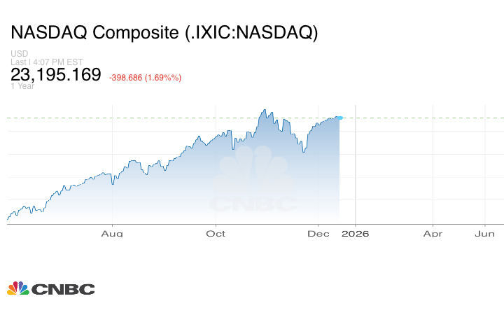 تراجع مؤشر ناسداك المركب بنسبة 1.69% إلى 23195.17 نقطة.