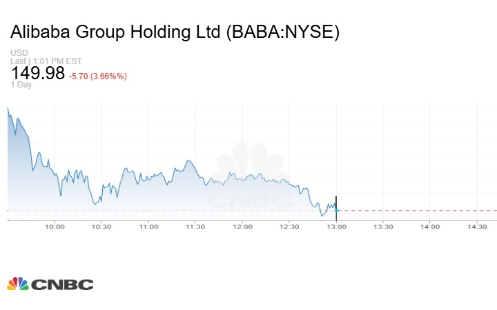 وانخفض سهم علي بابا بأكثر من 3.5% وسهم بايدو ينخفض بنحو 4%.