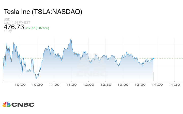 ارتفع سهم صانعة السيارات الكهربائية تسلا بنحو 4% خلال تعاملات وول ستريت.