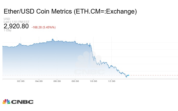وسعت عملة الإيثر خسائرها، خلال تعاملات الاثنين 15 ديسمبر/ كانون الأول، لتفقد 9% من قيمتها في 8 ساعات مع استمرار عمليات التصفية. وتراجعت ثاني أكبر العملات المشفرة من حيث القيمة السوقية بأكثر من 5% في أحدث التعاملات إلى مستويات دون الـ 3 آلاف دولار.