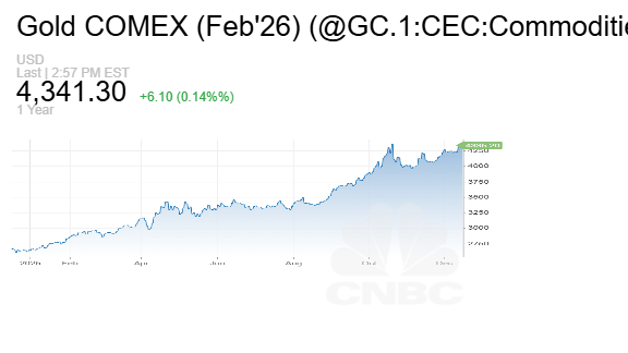 وسجل الذهب في المعاملات الفورية ارتفاعاً بنسبة 0.2% ليصل إلى 4310.21 دولار للأوقية بحلول الساعة 18:48 بتوقيت غرينتش، بينما تراجعت العقود الآجلة للذهب في أميركا بنسبة 0.1% إلى 4332.3 دولار.