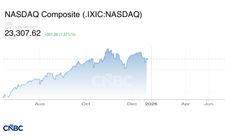 ارتفع مؤشر ناسداك المركب بنسبة 1.3%، عند الإغلاق مسجلاً 23.307.62 نقطة.