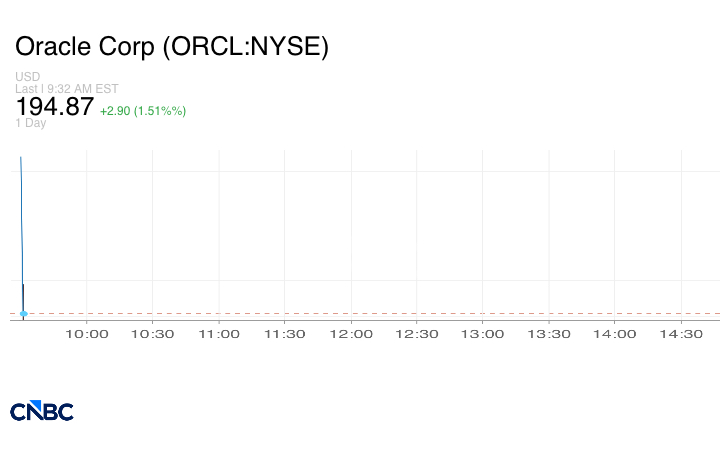 ارتفعت أسهم شركة البرمجيات العملاقة Oracle بنحو 2% بعد أن أكدت ويلز فارغو توصيتها بشراء السهم، مشيرةً إلى أنه ينبغي على المستثمرين الشراء عند انخفاض السعر. ويشير السعر المستهدف الذي حددته ويلز فارجو إلى إمكانية ارتفاع السهم بنسبة تقارب 50% عن سعر إغلاق يوم الجمعة.