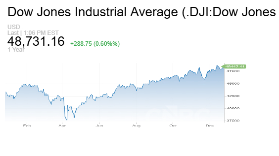 تعافت الأسهم الأميركية من أدنى مستوياتها في نوفمبر، مع عودة المستثمرين إلى أسهم التكنولوجيا والذكاء الاصطناعي الثقيلة مع اقتراب نهاية العام. وساعد تقرير تضخم معتدل وتقرير وظائف إيجابي في إبقاء الآمال حية بشأن المزيد من خفض أسعار الفائدة العام المقبل.