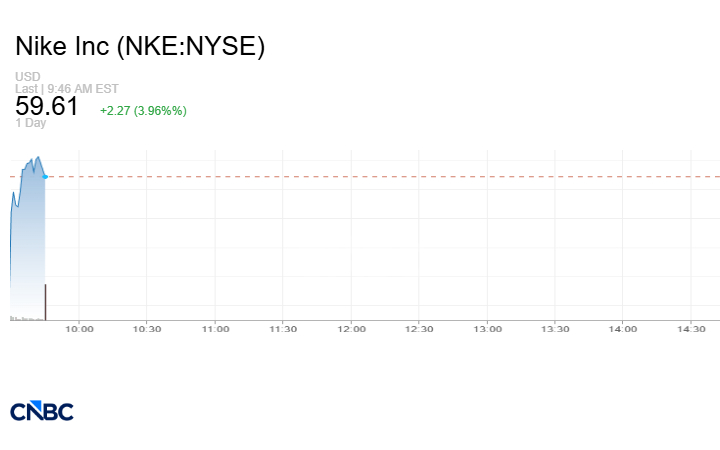 قفزت أسهم نايكي بأكثر من 4%، عقب إفصاح الرئيس التنفيذي لشركة أبل، تيم كوك، عن شرائه أسهماً في شركة الملابس الرياضية.