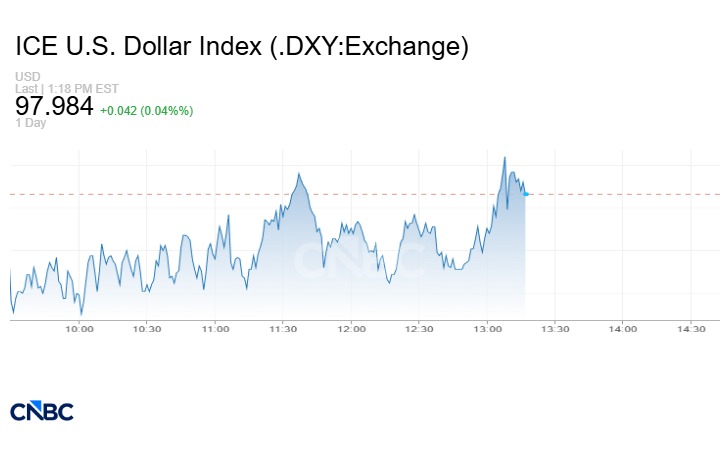 ارتفع مؤشر الدولار، الذي يقيس قيمة العملة في أميركا مقابل سلة من العملات من بينها الين واليورو، 0.07% إلى 97.96 نقطة.
