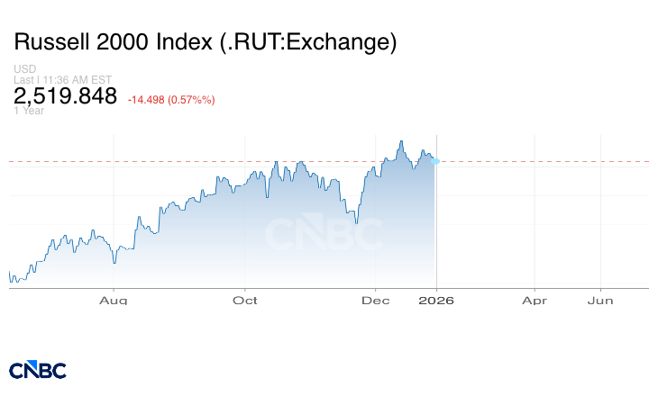 ارتفع المؤشر، الذي يركز على الشركات الصغيرة، بنحو 13% في عام 2025. في المقابل، ارتفع مؤشر ستاندرد آند بورز 500 الأوسع نطاقًا بأكثر من 17% خلال الفترة نفسها.