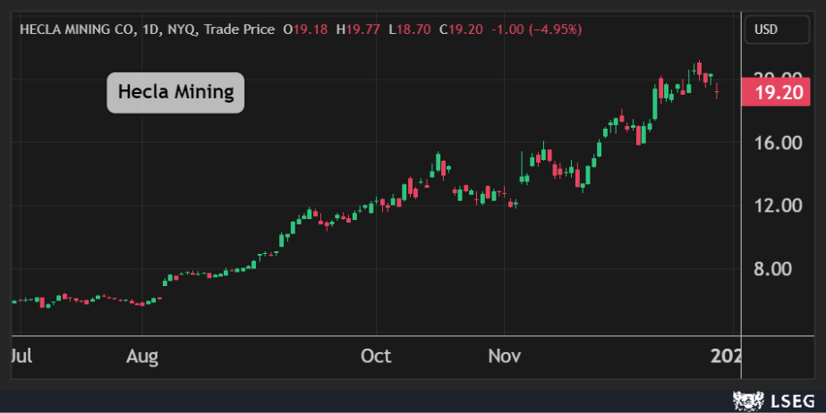 شهدت أسهم شركات تعدين المعادن النفيسة ضغوطاً حادة في جلسة الإثنين مع انخفاض سهم Newmont بنسبة 6%، وهبوط سهم تعدين الفضة Hecla Mining بنحو 5%.