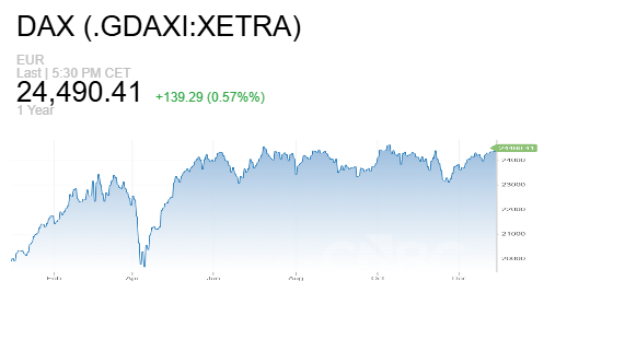 وارتفع مؤشر داكس الألماني بنسبة 0.57%