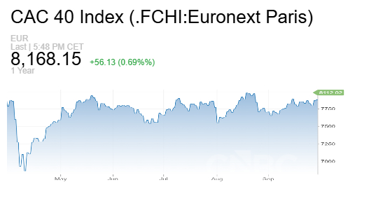 وارتفع مؤشر كاك الفرنسي بنسبة 0.69%