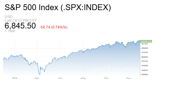 تراجع مؤشر ستاندرد آند بورز 500 رغم أنه أنهى عاماً استثنائياً. فقد انخفض المؤشر الأوسع نطاقاً بنسبة 0.74%