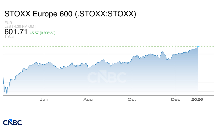 لامس المؤشر ستوكس 600 الأوروبي مستوى 600 نقطة للمرة الأولى مع مواصلة الأسهم العالمية مكاسبها القوية في الآونة الأخيرة وفي ظل تفاعل هادئ من المستثمرين مع إلقاء الولايات المتحدة القبض على الرئيس الفنزويلي نيكولاس مادورو في مطلع الأسبوع.