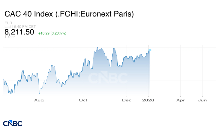ارتفعت المؤشرات الأوروبية بشكل جماعي عند الإغلاق، يوم الاثنين 5 يناير/ كانون الثاني، مع تفاعل الأسواق العالمية مع الإطاحة بالرئيس الفنزويلي نيكولاس مادورو من قبل الولايات المتحدة.