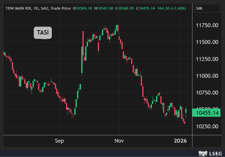 مؤشر تاسي يرتد من أدنى مستوياته في نحو 3 سنوات