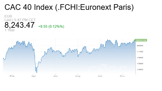 وصعد مؤشر كاك 40 الفرنسي بنسبة 0.12%