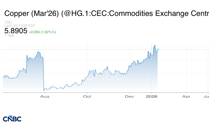 النحاس يمدد مكاسبه في 2026 مع ارتفاع المعادن الثمينة وطفرة الذكاء الاصطناعي