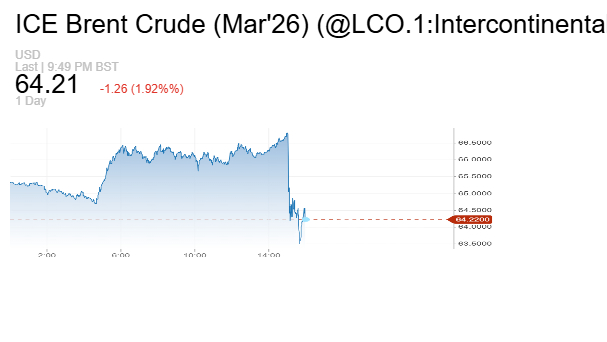 - خام برنت القياسي العالمي انخفض 1.84 دولار أو بنسبة 2.81% ليصل إلى 63.63 دولار للبرميل.