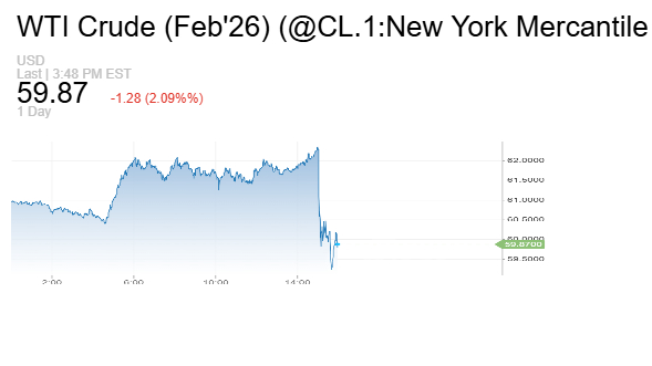 - خام غرب تكساس الوسيط الأميركي تراجع بمقدار 1.81 دولار أو بنسبة 2.96% ليصل إلى 59.34 دولار للبرميل.