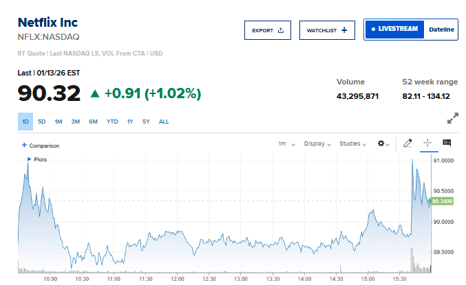 ومنذ الإعلان عن سعي نتفليكس للاستحواذ على وارنر براذرز ديسكفري في أكتوبر/تشرين الأول، فقد العملاق الرقمي أكثر من ربع قيمته السوقية، إلا أن أسهم نتفليكس قفزت بشكل طفيف بعد الأخبار يوم الثلاثاء، مغلقة على ارتفاع بنسبة 1%.