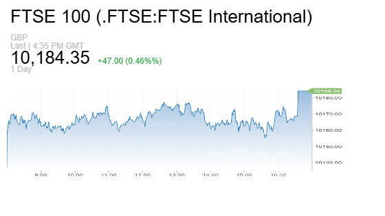 - مؤشر FTSE 100 البريطاني صعد 0.46% إلى 10,184.35 نقطة