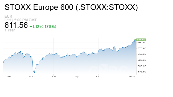 - مؤشر Stoxx Europe 600 أغلق عند 611.48 نقطة بزيادة 0.17%.