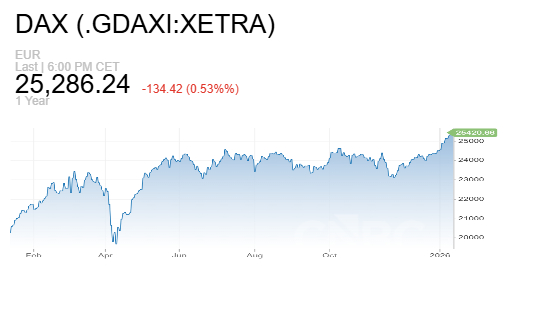 - مؤشر DAX الألماني تراجع 0.42% إلى 25,314.87 نقطة.