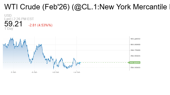 هوت أسعار النفط أكثر من ثلاثة دولارات الخميس 15 يناير كانون الثاني، متجهة لإنهاء سلسلة مكاسب استمرت خمسة أيام، وذلك بعد أن قال الرئيس الأميركي دونالد ترامب إن إزهاق الأرواح في حملة قمع الاحتجاجات الواسعة في إيران يتراجع، مما هدأ المخاوف من عمل عسكري ضد طهران وتعطل الإمدادات.