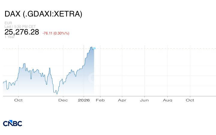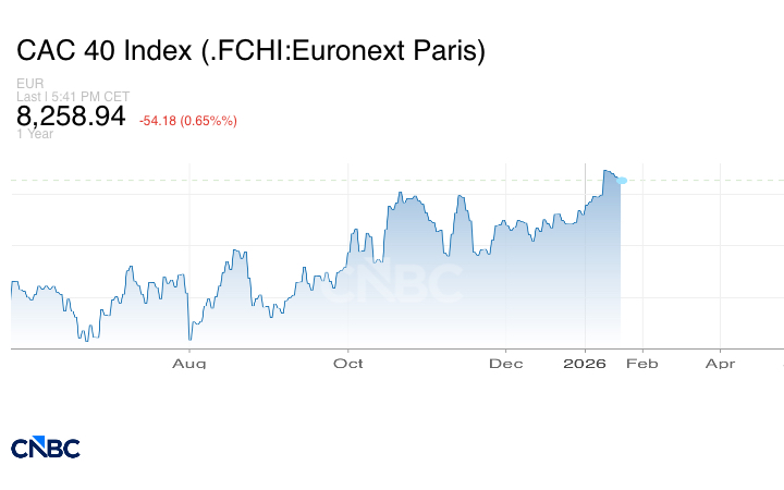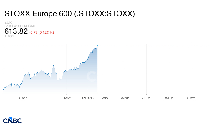 تراجعت المؤشرات الأوروبية مسجلة خسائر أسبوعية، يوم الجمعة 16 يناير/ كانون الثاني، في وقت يراقب المستثمرون التوترات الجيوسياسية، التي نشبت بين أميركا والاتحاد الأوروبي حيال خطة الرئيس دونالد ترامب للاستيلاء على غرينلاند.
