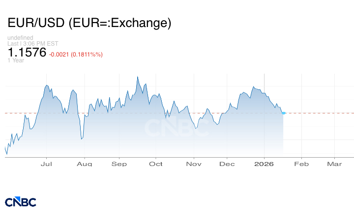 انخفض اليورو في التعاملات الآسيوية المبكرة، يوم الأحد 18 يناير/ كانون الثاني، ليسجل أدنى مستوى له في سبعة أسابيع، بعد أن توعد الرئيس الأميركي دونالد ترامب بفرض رسوم جمركية على واردات عدد من الدول الأوروبية لحين السماح للولايات المتحدة بشراء غرينلاند.