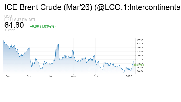 وصعدت العقود ‌الآجلة ​لخام ‌برنت ⁠عند ‌التسوية ⁠98 سنتا ⁠بما ​يعادل ‍1.53 ​مسجلة ‌64.‌92 ‌دولار ⁠للبرميل.